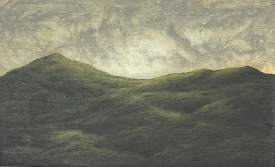 Charles Malzenski's acrylic landscapes are spectacular studies of detail. Foliage and cloud displays are somehow otherworldly, while being very much the world we are in. This miniature painting on wood measures 3 1/2" x 2 1/4".