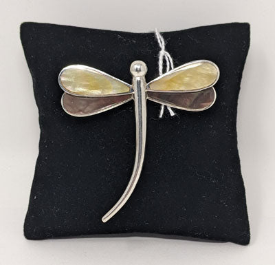 A fabulous dragonfly brooch from Anni Maliki. We so rarely see pins! About 2.5" tall.