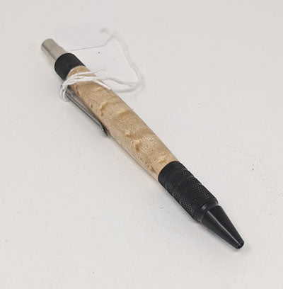 This Birdseye Maple click pen uses a Parker style refill- it's a pen for life! About 5.5" long with black ink.