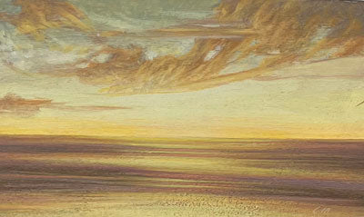 Charles Malzenski's acrylic landscapes are spectacular studies of detail. Foliage and cloud displays are somehow otherworldly, while being very much the world we are in. This miniature painting on wood measures 3 1/2" x 2 1/4".