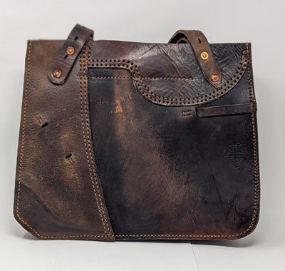 Cowbell Leather Co makes very cool leather goods- like this unique bag made from an old saddle. 14" x 11", with an interior zip pocket.