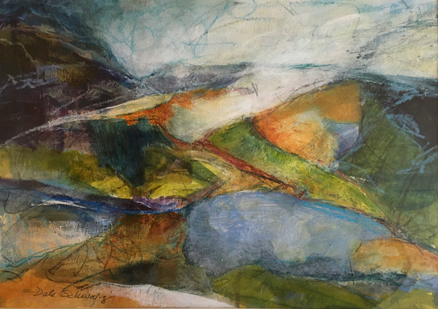 Original painting/mixed media. Matted and framed. Outer frame dimensions measure 19.5" x 13.5"