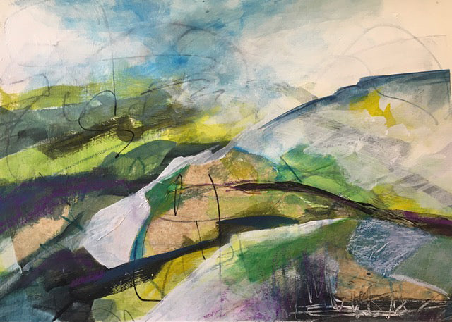 Original painting/mixed media. Matted and framed. Outer frame dimensions measure 19.5" x 13.5".