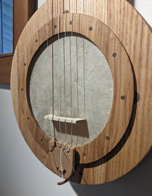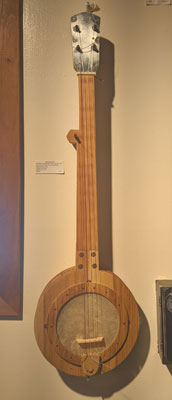 Unusual, fully funtional handmade instruments from Dane Donato, Mountain Banjo with 5 strings. Stands 36" tall from top to bottom.