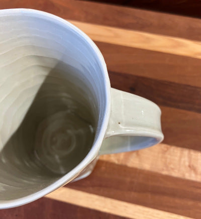 Daniel Bellow's glazes are always so wonderful and layered, and they really makes these everyday pieces something special. This mug is about 4.75" tall.