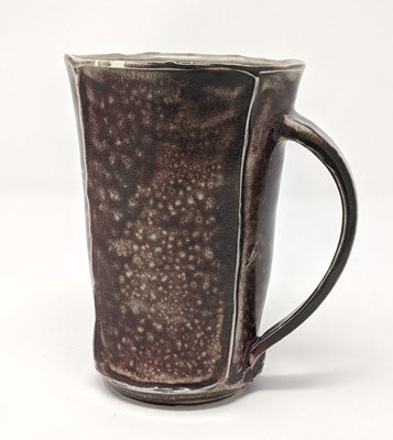This tall mug is about 5 1/4" tall and about 3 1/2" wide at the top. Comfortable handle.