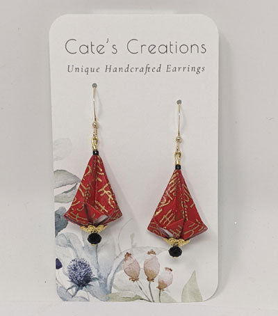 Yuzen Washi paper, cleverly folded. Sterling silver ear wires, about 2" tall.