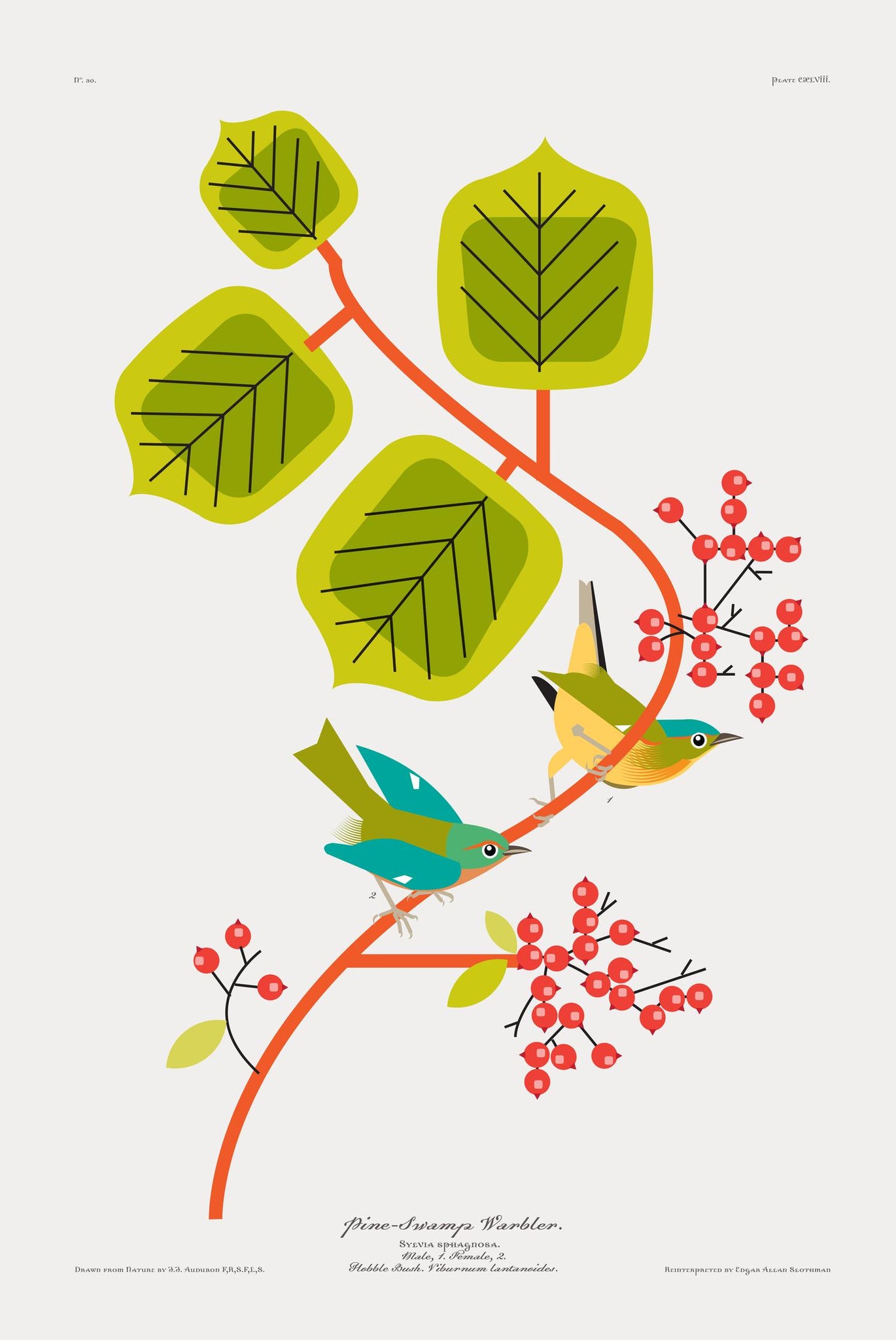 Edgar Allan Slothman (Don Carter) has reimagined John James Audubon's iconic bird paintings from the 1800s, and they are clever graphic delights. This unframed print is 8" x 10".