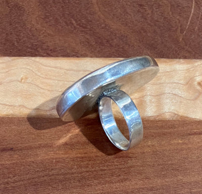 Homestone Jewelry & Designs mines, grinds and polishes stones found in the Northeast and fuses them with wood and metal smithing to bring you truly unique one of a kind work, like this statement ring. Ring size 7.