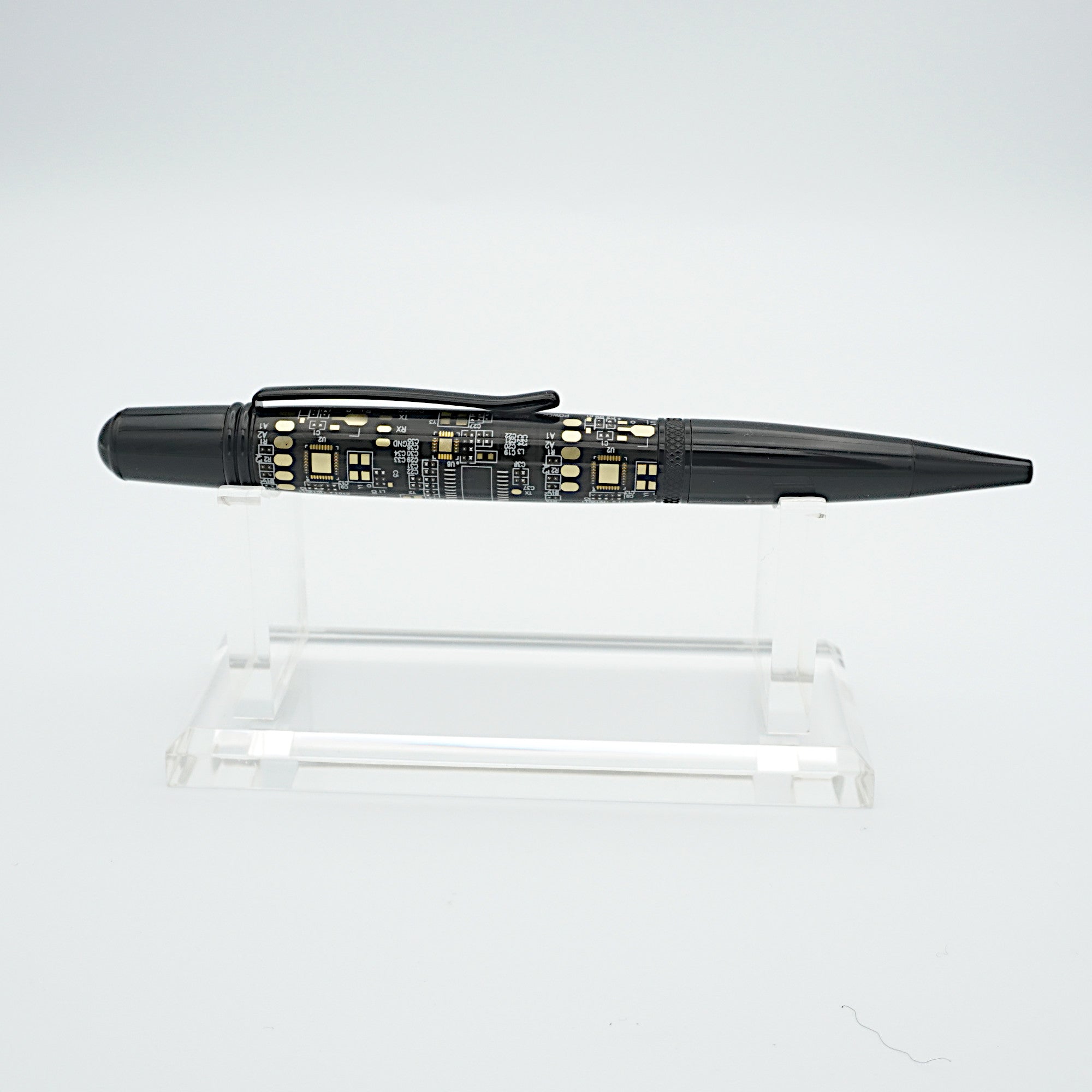 Encased in acrylic are real 3D circuit board components, not just printed images, making this a very special and unusual pen. A classic style ballpoint pen with flair and elegance.