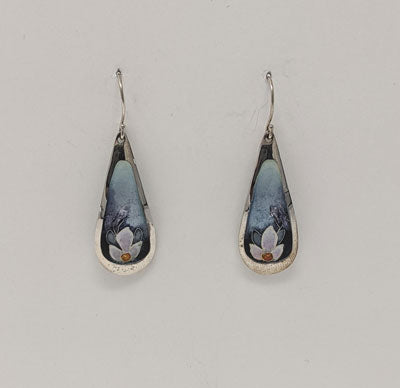 Jacqueline DeBoer uses a cloisonne technique to create miniature fine enamel landscapes and florals, set in Sterling silver. About 1 1/2" tall from top to bottom.