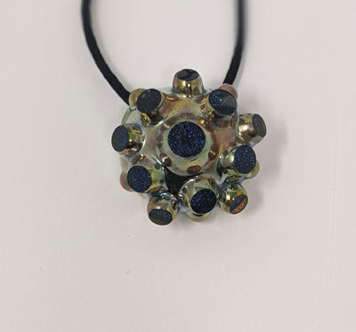 A beautiful glass pendant on a silky cord, pendant about 1.25" across.