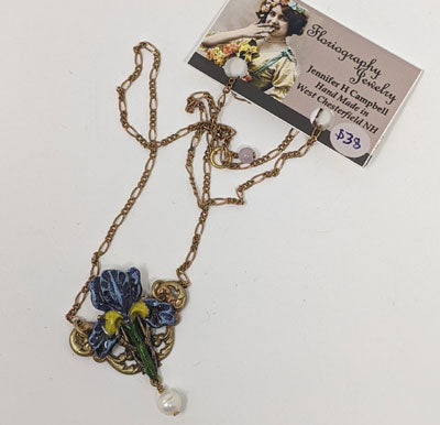 Sweet Iris with a freshwater pearl, chain length 17 3/4".