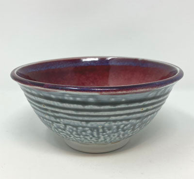 John's porcelain pieces are a delight to behold, with beautiful glaze and texture combinations. This bowl is about 3" tall.
