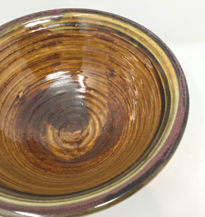 John's porcelain pieces are a delight to behold, with beautiful glaze and texture combinations. This bowl is about 4" tall.