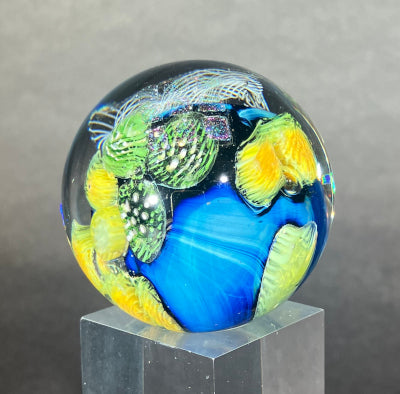 This 1 3/4" Planet is round and will need a base. Signed with JS.