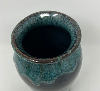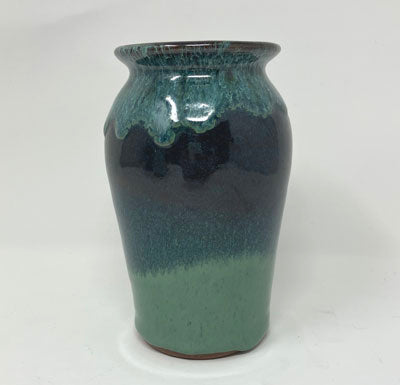 Joy's glazes are always so wonderful, and the forms are always so practical. Vase is around 6" tall.