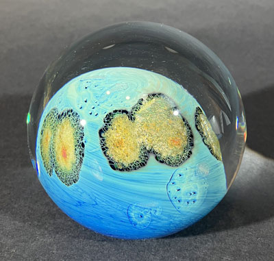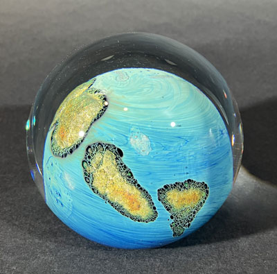 This 3.5" Planet has a flattened, polished base serialized 12.3.23 and signed Simpson.