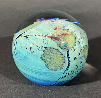 This 3.5" Planet has a flattened, polished base serialized 12.4.23 and signed Simpson.