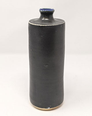 This simply glazed bottle is quite striking in its form, it is quite modern. About 8" tall and about 3" wide.