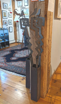 From Piper Glass & Steel, fun steel stakes for the garden! About 56" tall. This item can be purchased online but must be picked up in person, this item cannot ship.