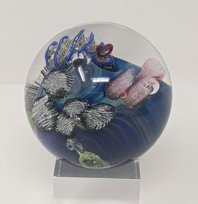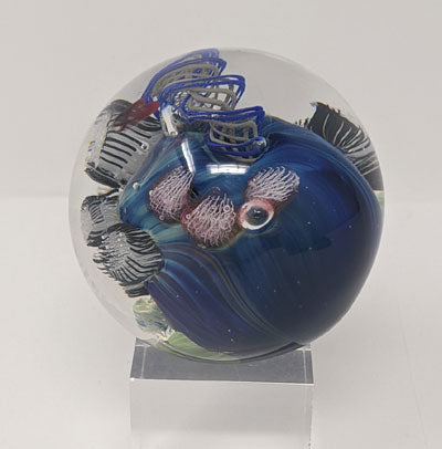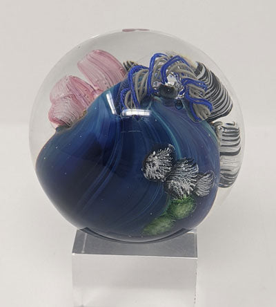 Every year for Valentine's Josh Simpson makes planets that contain this very special 'heartfelt' cane. Each Corona planet hosts a few of these hearts, all a little different, all unique. 2.25" wide planet with a flat, polished bottom. Signed and dated by Josh.