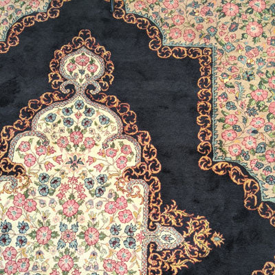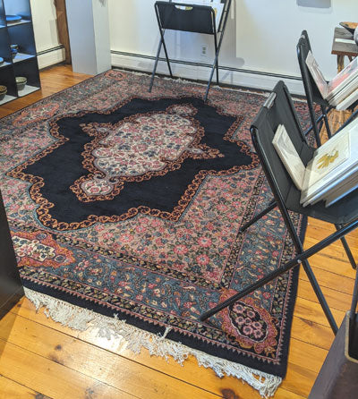 All wool, 9'6" X 7'10". This item cannot be shipped, it must be picked up in person.
