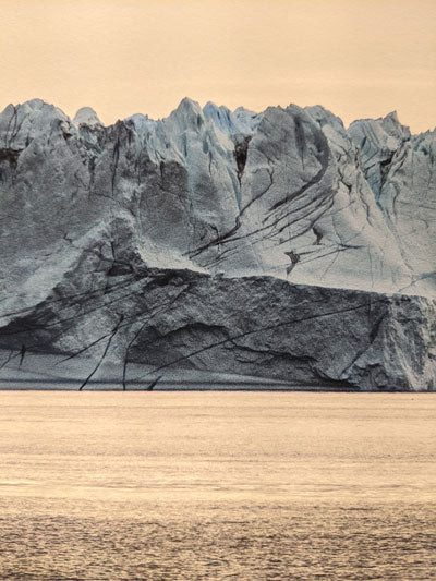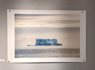 Blue on Grey, East Greenland, from Sarah Holbrook's Iceberg series. Signed by Sarah, this printed image is 30" x 20" on 36" x 24" paper. This unframed print would ship rolled in a cardboard tube.