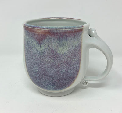 John's porcelain pieces are a delight to behold, with beautiful glaze and texture combinations. This mug is about 4" tall.