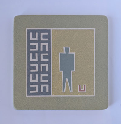 Andrew's wonderfully graphic pieces can be used as (hangable) wall tiles, spoon rests, or coasters. Beautiful grouped or singular. Tile is 6" x 6", and has a hanging recess and soft feet to protect surfaces. About 3/8" thick.