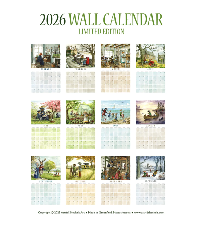 From Astrid Sheckels, 12 months of adorable critters doing their thing. 11" x 17".