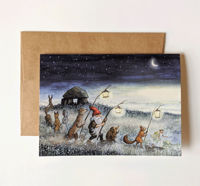 Always a favorite with our customers, it is hard to resist Astrid's woodland friends. Do you know anyone who would be delighted to recieve this in the mail? 7" x 5", envelope included. Blank inside.